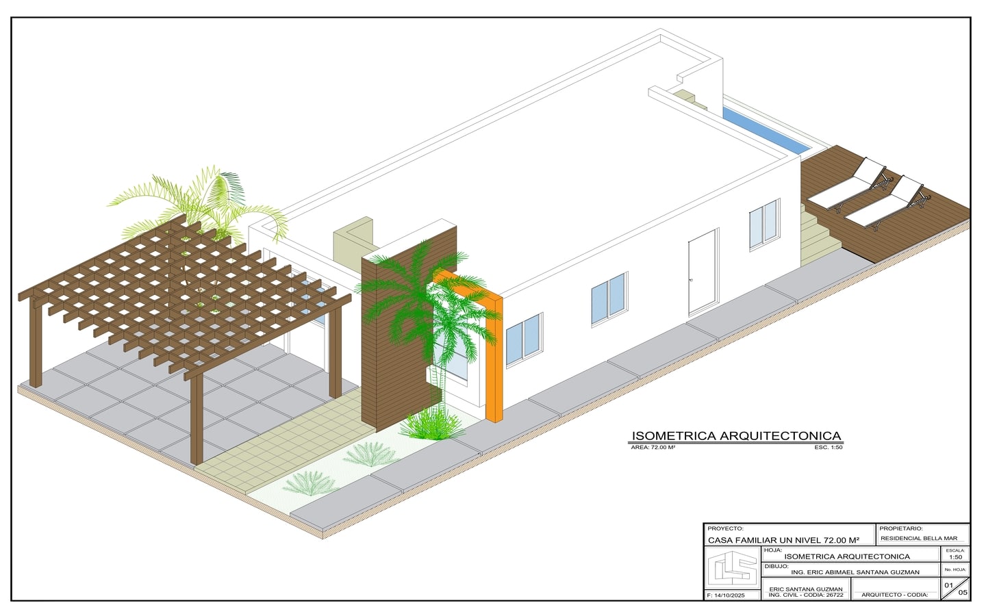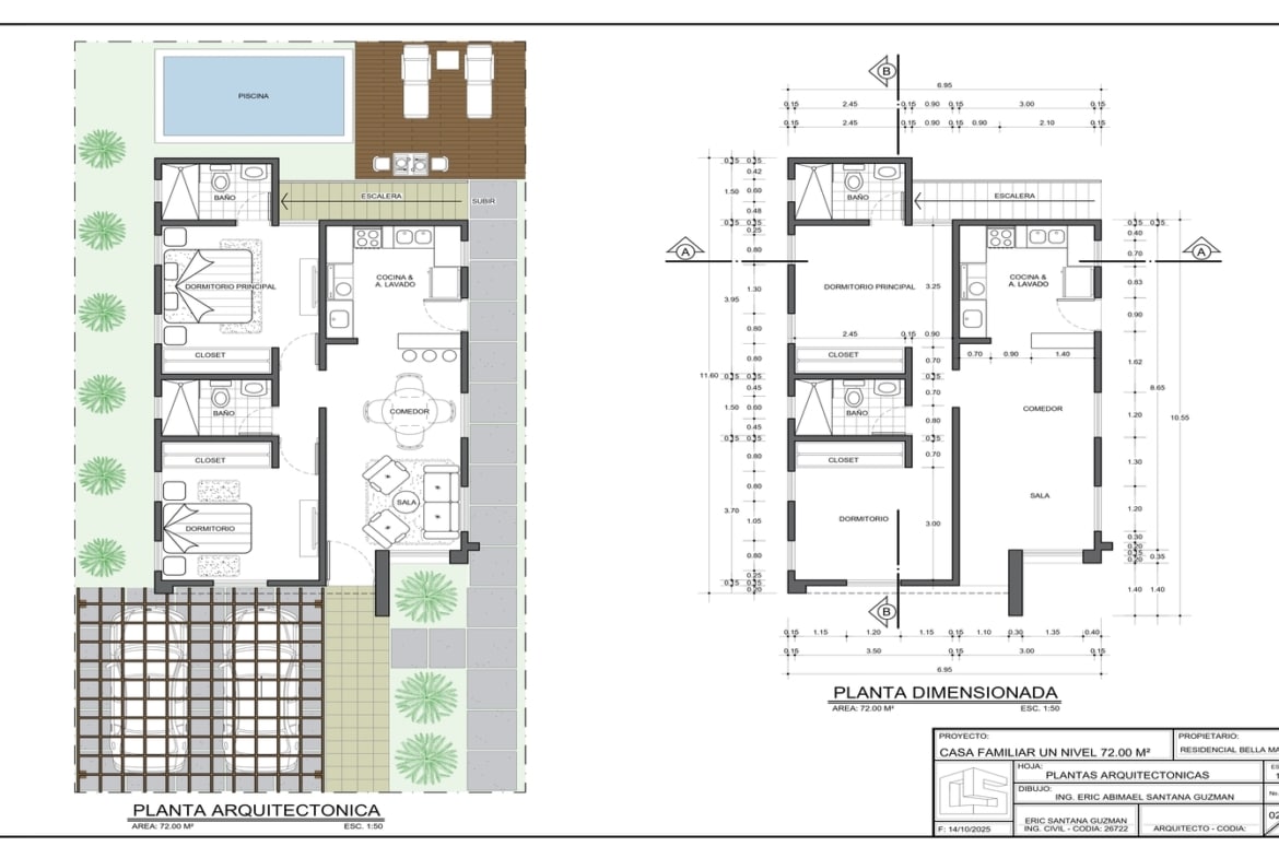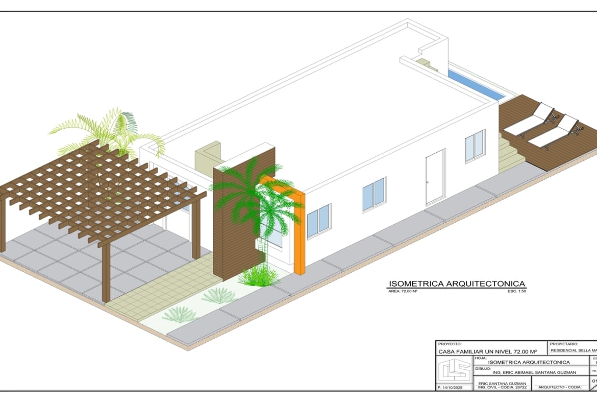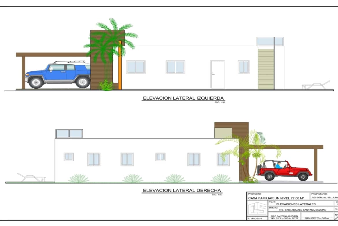 Es importante destacar que los 72 M2 son de área útil, o sea que solo hablamos del interior de la casa, si ahora o a futuro desea una marquesina doble, podemos construírsela o construirla usted más adelante, lo que transformaría la casa en una de 97M2, asumiendo que la marquesina tuviera 25 M2, pero usted puede decidir el tamaño, la aprobación de cualquier diseño o remodelación, debe ser realizada por la administración.